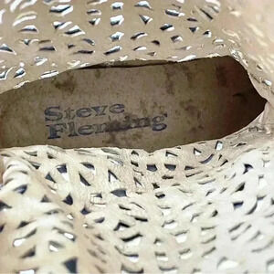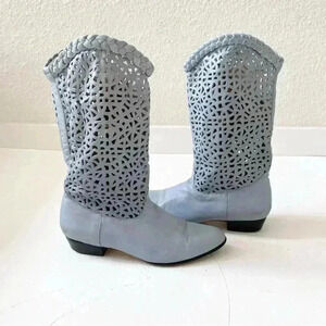 Vintage 80s Steve Fleming Western Blue Mid Calf Boots Perforated Cut Out Boho
