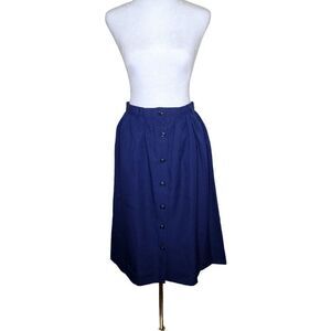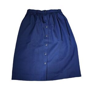 Vintage 80s Straight Skirt Womens Size L Navy Blue Button Front Elastic Waist