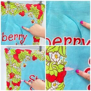 Beautiful and colorful vintage nostalgia Strawberry Shortcake sleeping bag featuring all of her friends! Zipper functions well. This is in good vintage condition. Please see all photos for little marks , rips and spots. I do believe that the inside stains may come out with treatment and washing. I was apprehensive to wash and cause any additional damage. If you are handy with a needle and thread, I’m sure the little rips are easily mendable. Some have been mended by previous owner. See photos.
