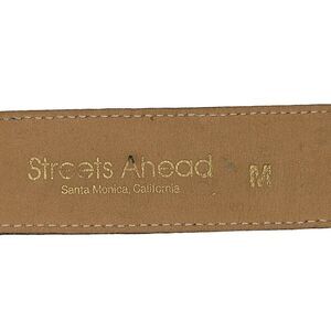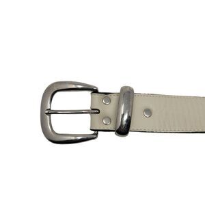 Vintage 80s Streets Ahead Bone Ivory Leather Belt M Large Silver Buckle Retro