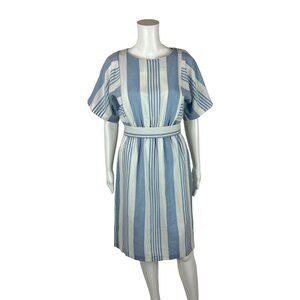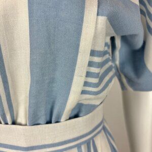 Vintage 80s Striped Dress Women's XS Powder Blue Stripes Faux Linen Slouchy