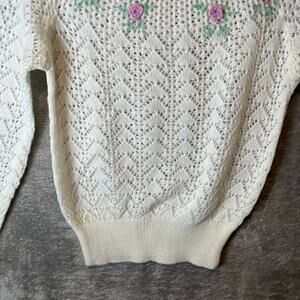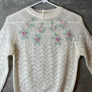 Vintage 80s Style Handmade Knitted Floral Sweater Size Medium Coquette Cottage