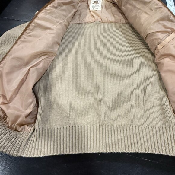Vintage 80s Suede & Knit Mens Medium Tan Leather Zip Up Jacket