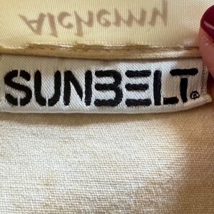 Amazing vintage button front dress with removable cinch back and amazing artwork .