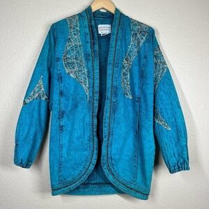 Vintage 80’s Sundance Denim Jacket Embroidered Blue Dyed Size Small