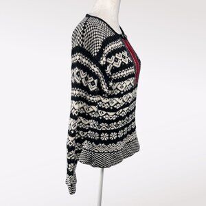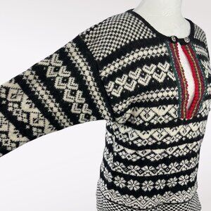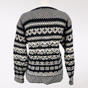 Vintage 80s Susan Bristol Shetland Wool Nordic Sweater Black White Small