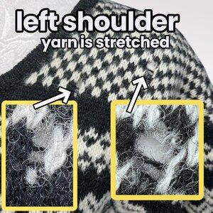 • 2 small spots where knit is stretched out at left shoulder