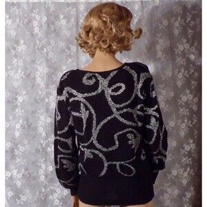 Vintage 80s Sweater 1980s Black Silver Whimsygoth New Wave Retro Size Large