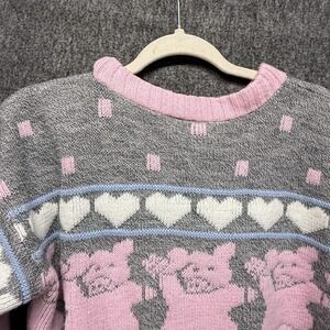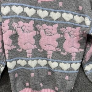 Vintage 80s Sweater Dancing Pig Hearts Fairy Kei Harajuku All Over Print Size M