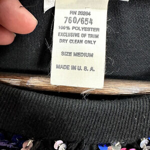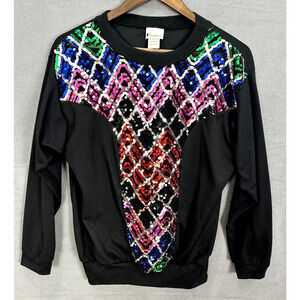 Vintage 80s Sweatshirt Womens Medium Black Sequin Mixed Media Retro Glam USA
