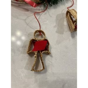 Vintage 80s Swedish Christmas Wreath Hanging Straw Scandinavian Mobile V23