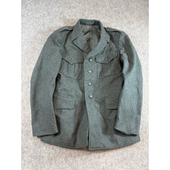 Vintage 80s Swiss Army Military Jacket Mens 46 Gray Wool Utility Outdoor WWII