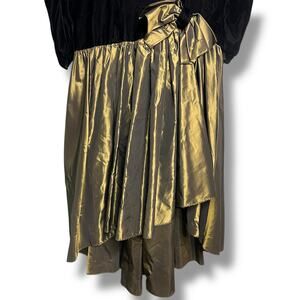 Vintage 80s Size 10 Black Velvet Gold Iridescent Taffeta Drop Waist Evening Dress