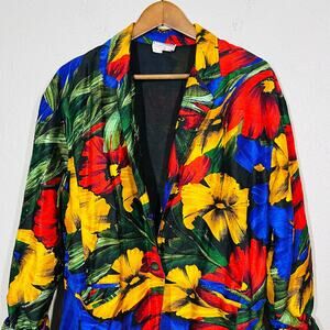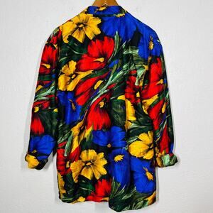 Vintage 80s Taarika Floral Silk Jacket Bright Long Sleeve Mid Thigh - M