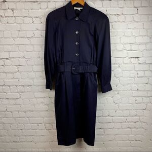 Vintage 80s Talbots 100% Rayon Long Sleeve Belted Shirt Dress Navy 6