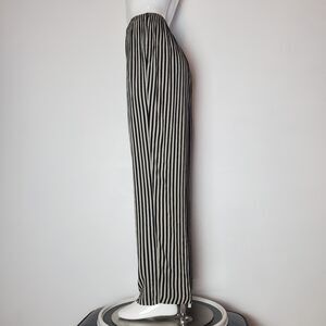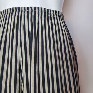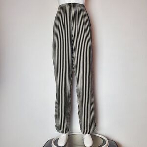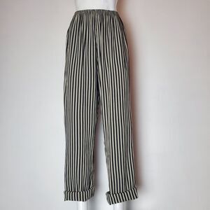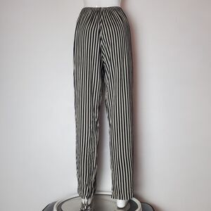 Vintage 80s black and tan striped high-waisted wide leg trousers with elastic waistband. No pockets.