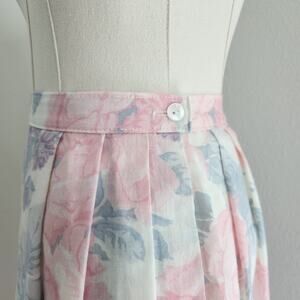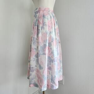 vintage 80s pastel floral midi skirt tan jay pleated high waist wool blend cottagecore romantic prairie light academia spring summer pastelcore retro made in usa floral skirt quiet luxury soft girl coquette core