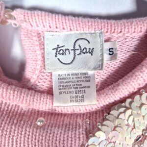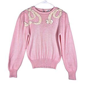 Vintage 80s TanJay Pink Beaded & Sequined Bow Sweater Womens size Small