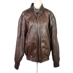 Vintage 80s Tannery West dark brown leather bomber jacket Mens L