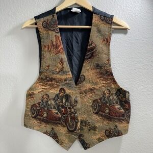 Vintage 80s Tapestry Vest Academia Motorcycle Boho