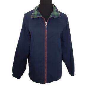 Vintage 80s Tartan Plaid Funnel Neck Jacket Reversible Full Zip Windbreaker Sz M