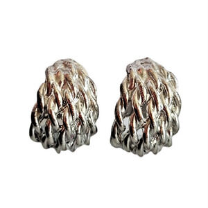 Vintage 80s Teardrop Silver Tone Rope Twist Statement Clip On Earrings