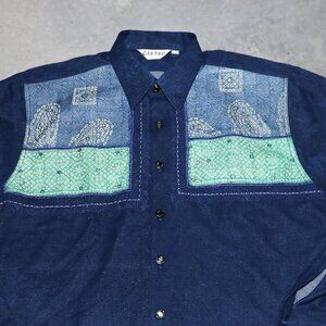 Vintage 80s Terry Cloth Collared Formal Evening Button Down Mens Shirt Size XL