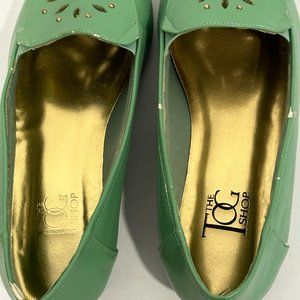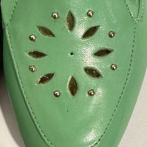 Vintage 1980s The Tog Shop Women's Size 7M Loafers Flats Shoes ~ Beaded with Cut Out Upper ~ Lime Green ~ Good Vintage Pre-Owned Condition ~ See Photos