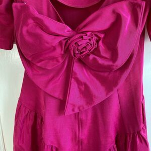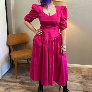 Vintage 80s Time & Eternity Fuchsia Pink Puff Sleeve Prom Dress Gown