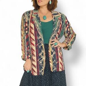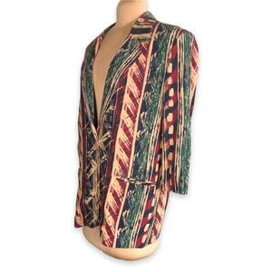 Vintage 80s Toni Garment Oversized Burgundy Blazer Jacket Abstract Southwest Art