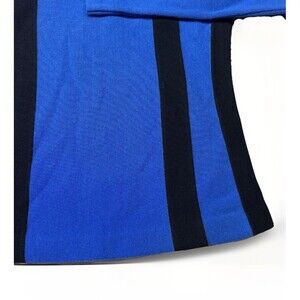 Step back into the bold style of the 1980s with this vintage Topher wool sweater. Featuring striking royal blue with black vertical stripes, a mock neck, and sleek fitted silhouette this piece embodies mod-inspired retro fashion. Made from 100% wool, its warm, soft, and effortlessly cool.