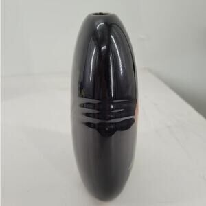 Vintage 80s Toyo Japan Black Orange Bird of Paradise Bubble Vase 2-2