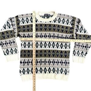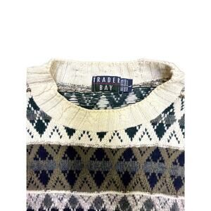 Vintage 80s Trader Bay Grandpa style sweater asymmetric shapes Sz Large