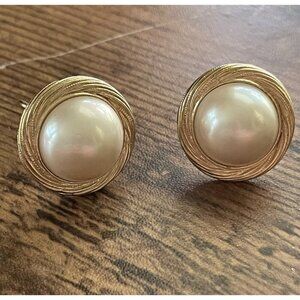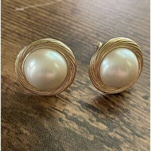Swirled Gold Tone Rounds with a Faux Pearl Center Cabochon