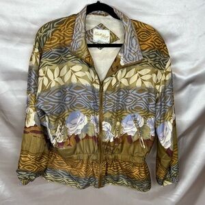 Vintage 80’s Tropical Hawaiian Print Silk Windbreaker Zip size Medium