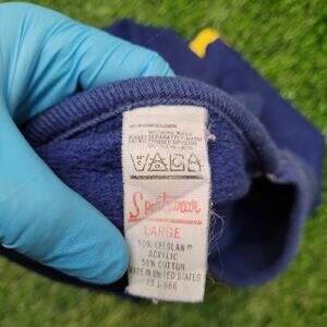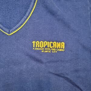 Vintage 80s Tropicana Atlantic City V-neck sweatshirt cropped fit navy with yellow trim and sleeve stripes 50/50 blend.