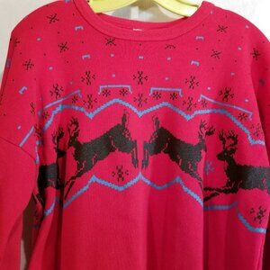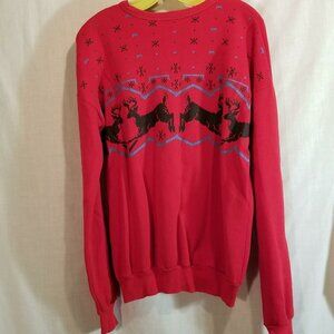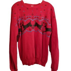 Tultex Sweatshirt M Red Casual Ugly Christmas Reindeer Long Sleeve Scoop Neck