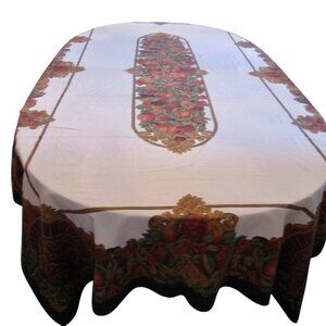Beautiful Thanksgiving tablecloth in a generous banquet size, 60 x 100" rectangle.