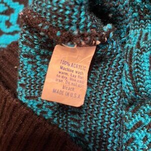 Throw it back with this retro black and blue sweater! A true 80s vintage piece, featuring a bold design and boxy, oversized fit for that effortlessly cool, comfy vibe. Made from 100% acrylic – soft and cozy. ✨ No holes, just some light wear on the edges (see photos). A perfect addition for vintage lovers!