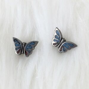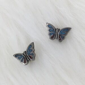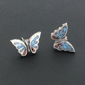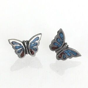 Vintage 80’s Turquoise Butterfly Stud Earrings Chip Inlay Boho Western Retro