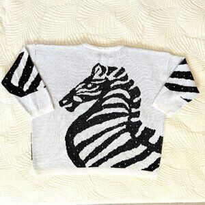 Vintage 80s Turtle Bay Black and White Zebra Sweater Size XL