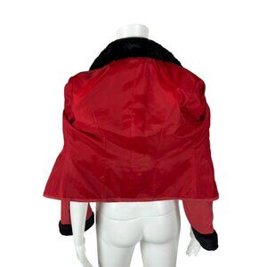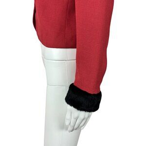 Vintage 80s Tuxedo Jacket Women's XS Salmon Black Faux Fur 1940s Style Mini Blazer