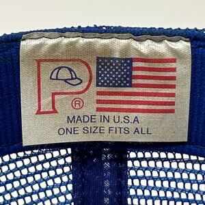 Vintage 80s United States US Air Force Retired Trucker Hat Baseball Cap USAF Military Scrambled Eggs Embellishments Gold Leaf Leaves Blue Paramount P Brand Mesh Foam Front Snapback Five Panel A-Frame Made In USA