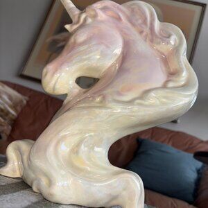 Iridescent white and pink mega cool unicorn sculpture. Still full of life and looking to be admired!