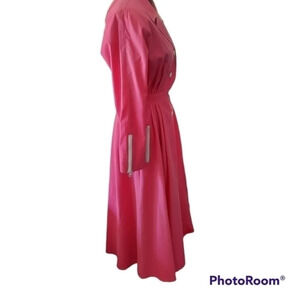 Vintage 80s Unique Bright Pink Button Down Shirt Dress