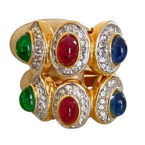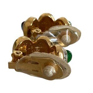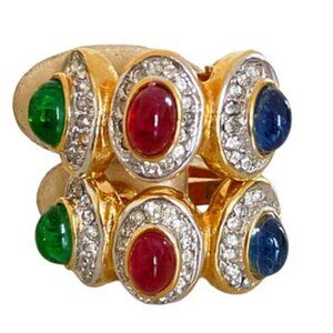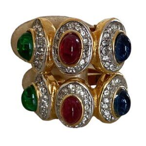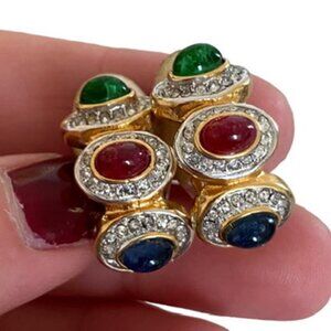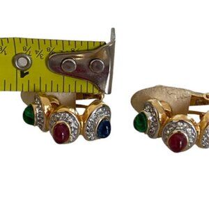 Vintage 80s Unsigned Christian Dior Earrings HuggiesCabochon and Pave Rhinestone