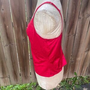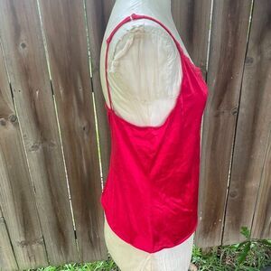 Vintage 80s VANITY FAIR CAMISOLE Shiny Glossy Red Lace Trim 36 Nwot