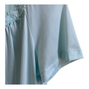 Vintage 80s Vanity Fair Nylon Pajama Set M Blue Buttons Short Sleeve Long Pants