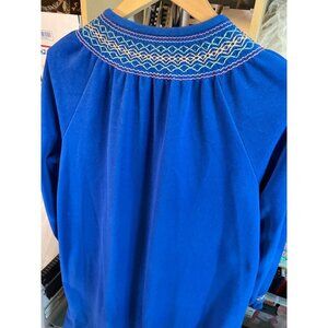 Vintage 80s Vanity Fair Royal Blue Full Zip Embroidered Collar Maxi Robe Sz L