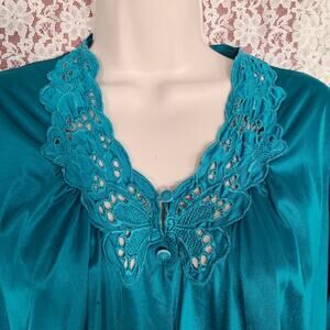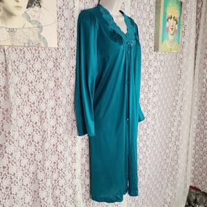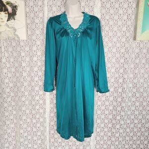 Vintage 80s Vanity Fair green Lace collar sleepwear size medium